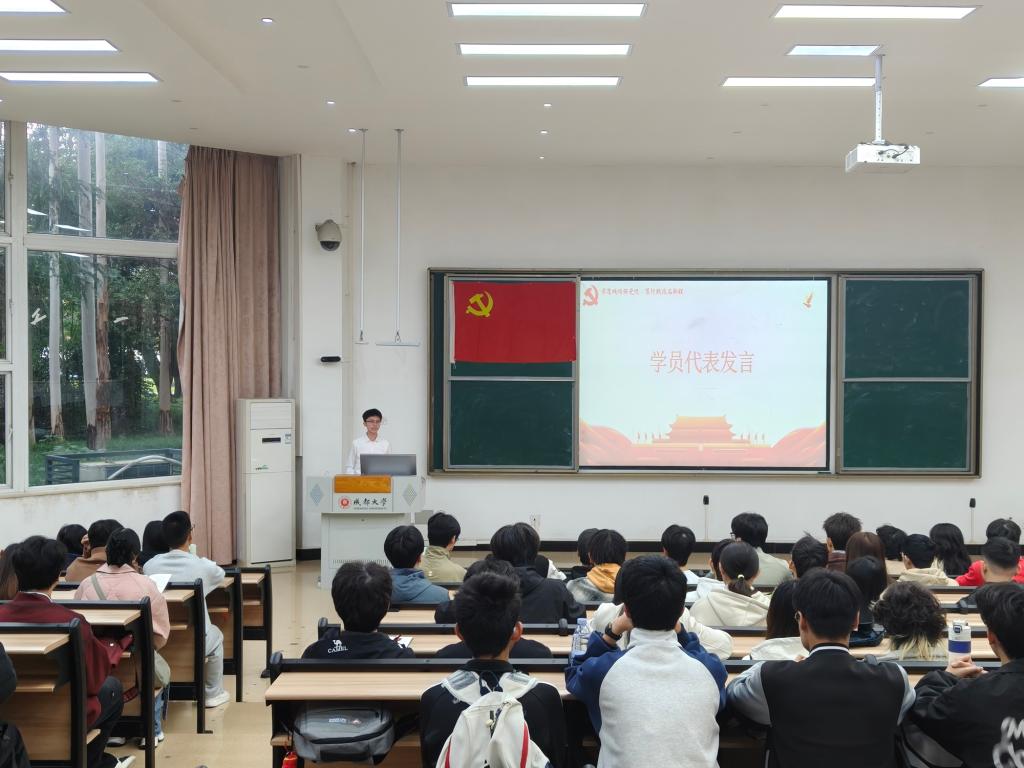 培训班班主任陈璐从学员守则、课程安排、结业细则方面详细介绍了培训班管理规定,强调了培训纪律要求。希望学员们在培训中提升政治理论修养和自我素质,不断蜕变成长,争取早日成为一名光荣的共产党员。