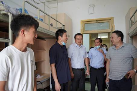 院长冯威及书记王仕平等来到迎新现场,亲自指导迎新工作,走访新生寝室,详细了解新生报到情况,与新生亲切交谈,了解同学们入住后的适应情况,并叮嘱同学们尽快调整状态,以积极的态度和饱满的热情投入到丰富多彩的大学学习生活中。