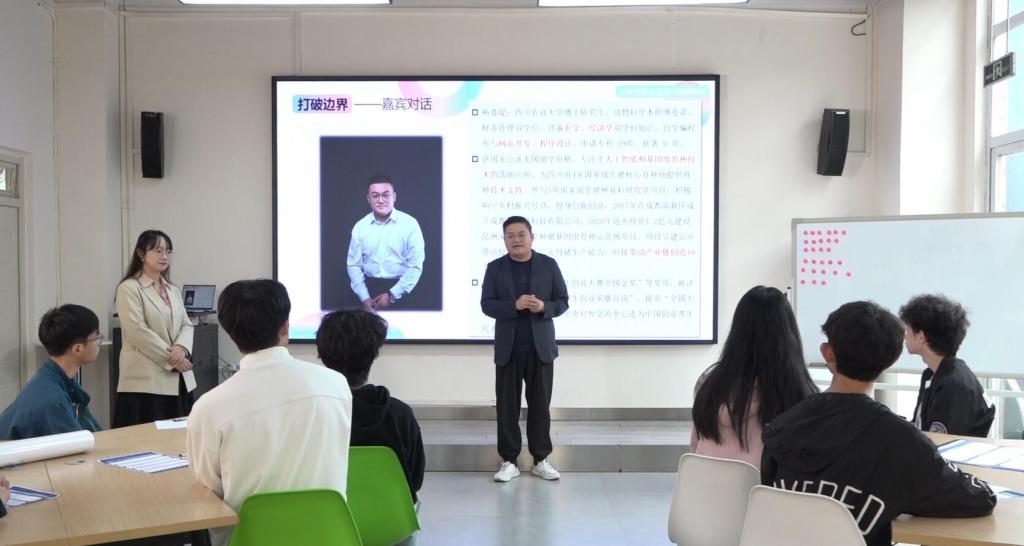 历年学生的就业情况和毕业去向,引出“边界”的概念,然后通过展示“从新东方到东方甄选”、“文旅局长们卷起来了”、“大山的女儿——黄文秀”等案例,告诉同学应该打开格局,拓展思路,跳出专业限制,把视野聚焦于社会需求,积极将自我规划融入到社会发展中,实现自我价值。随后,陈老师还邀请了来自四川农业大学的杨喜堤博士,为同学们进行分享,通过讲述自己的职业发展故事,帮助同学们更好的思考如何打破职业边界,探索新的职业发展方向。杨喜堤博士的分享引发了同学们的强烈反响,加深了对职业发展的理解和认识。