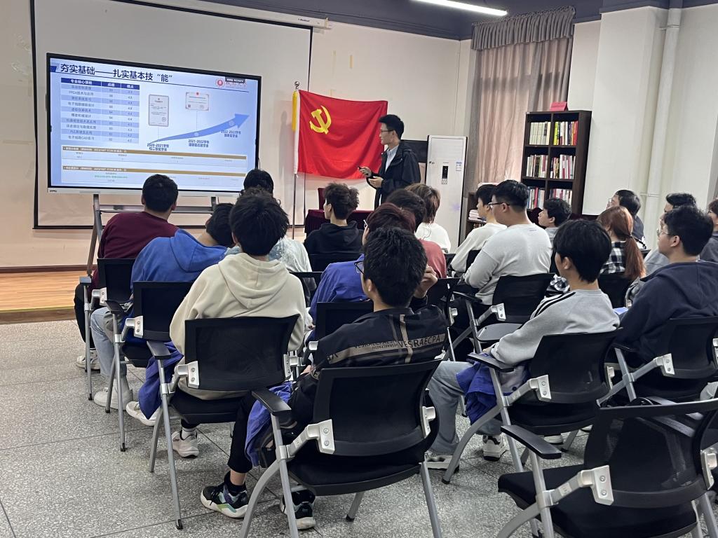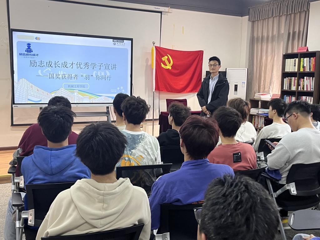 在机械楼M308开展了励志成长成才优秀学子宣讲活动,2020级测控专业的国奖获得者唐羽峰同学以“科创兴国 筑梦未来”为主题,讲述了自己的励志故事。