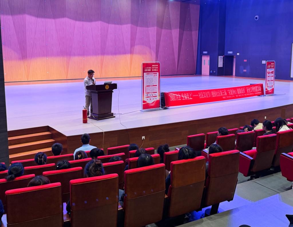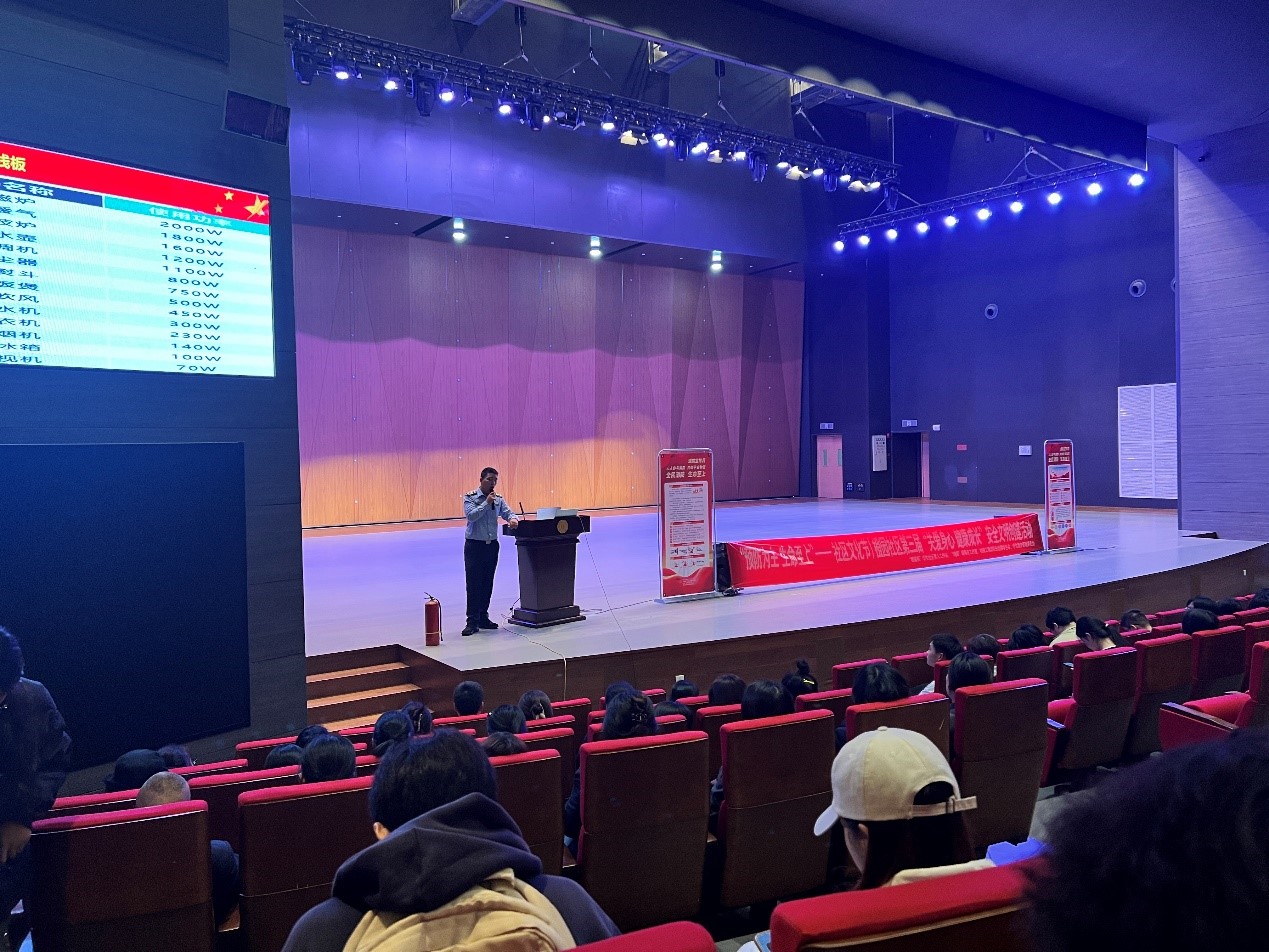 活动特别邀请到成都市泽安消防宣传中心的王伟教官,为同学们带来一场既生动又富有教育意义的消防安全知识讲座。王教官结合近年来高校及家庭火灾的真实案例,深入剖析了火灾的成因、危害以及预防措施。同时,他还详细介绍了常见灭火器的正确使用方法,并现场演示了如何正确操作这些器材。面对师生们的积极提问,王教官耐心细致地一一解答,现场互动频繁,氛围热烈而活跃。不仅增加了师生们的消防安全知识,更教会了大家在火灾紧急情况下的自救互救技巧。