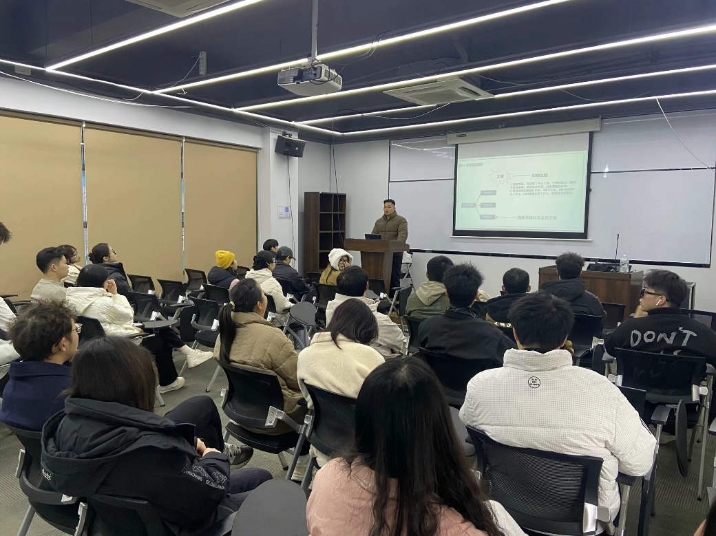 随后,左裕琳同学深入讲解了如何从海量的文献中发掘创新点,以及如何构建严谨的实验方案和理论框架。她强调,科研过程中要保持高度的专注与耐心,不惧困难与挫折,勇于在失败中总结教训、调整方向。张景煜同学的分享则引起了同学们的强烈共鸣。他表示,面对科研压力,要学会劳逸结合,培养兴趣爱好,以积极乐观的心态应对挑战,同时给同学们分享了他的一些学习方法。最后,全体人员合影留念,本次活动圆满结束。