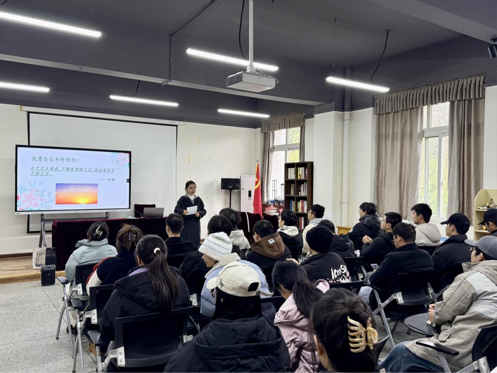 研究生一年级的邓婷丹向同学们分享了自己的考研经验,从个人经历出发,讲述了如何克服备考过程中的困难和挑战,以及如何有效利用时间、调整心态、保持健康的生活习惯等实用建议。这些来自“过来人”的经验分享,让在场的考研学子感到受益匪浅,也为他们的备考之路提供了参考。