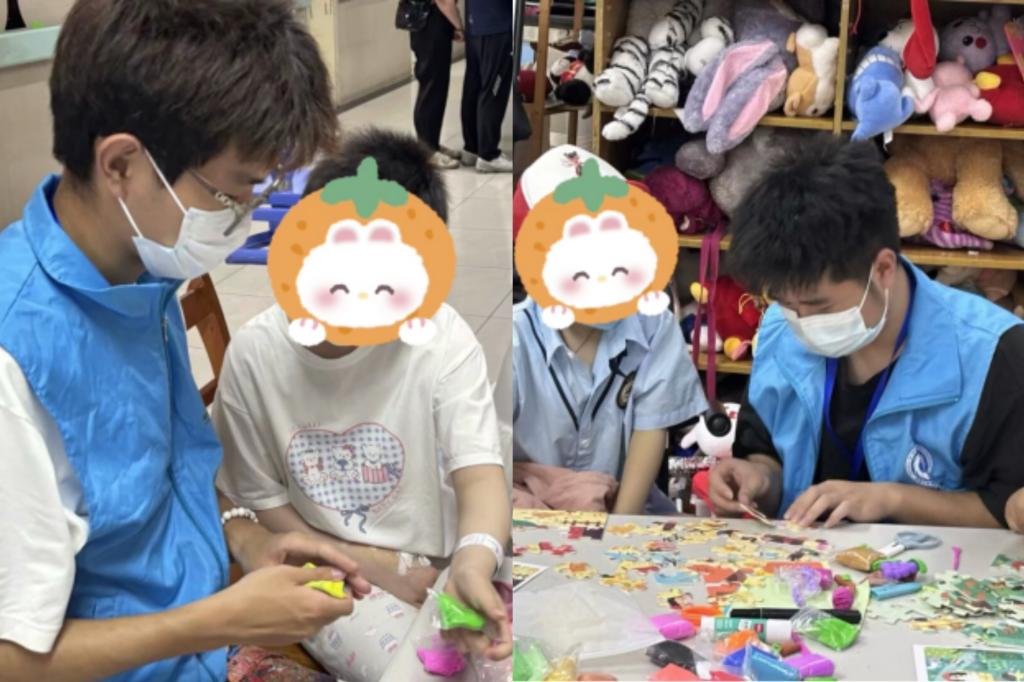 30余名同学前往四川省肿瘤医院开展思政育人志愿服务活动。活动前期,同学们精心筹备物资、玩具、书籍,并设计宣传海报。活动中,志愿者分组陪伴孩子们。他们与孩子们一同画画,描绘心中美好;玩超级黏土,齐心创作可爱模型;拼简易拼图,感受团队合作;搭建积木,锻炼动手能力。现场暖意融融,欢声笑语不断。