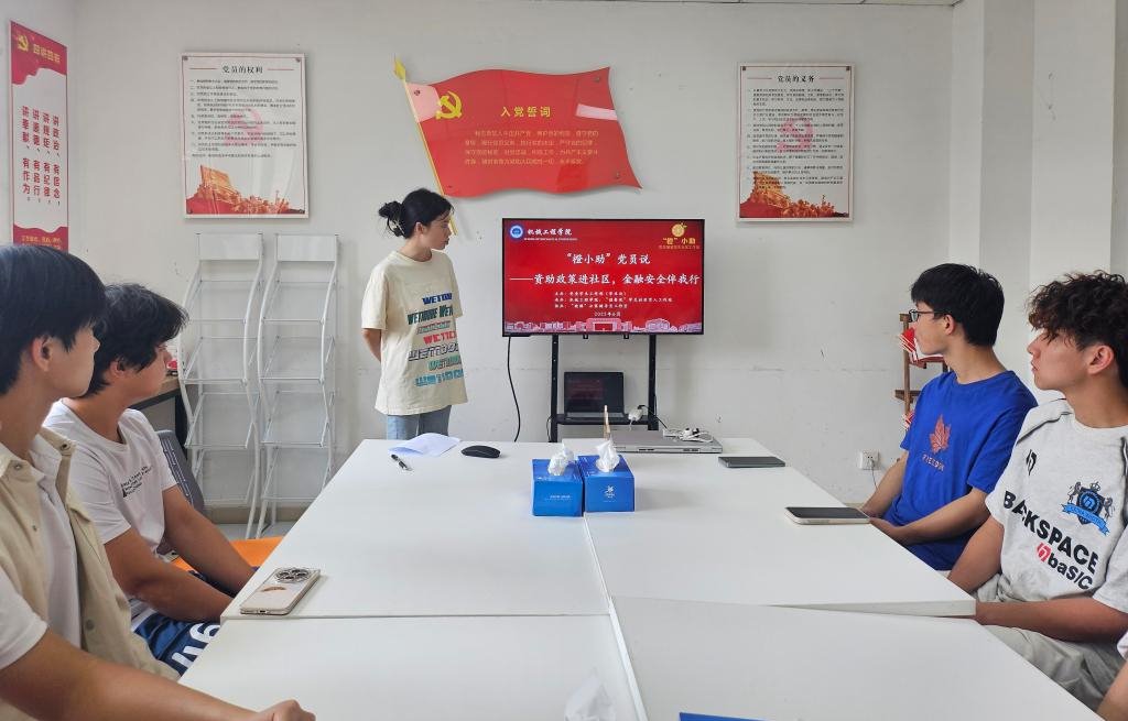 学工办联合“德馨苑”学生党支部,在学生宿舍3栋“德馨苑”党员活动室开展了以““橙小助”党员说——资助政策进社区,金融安全伴我行”为主题的宣讲。辅导员张王赟卓主持。