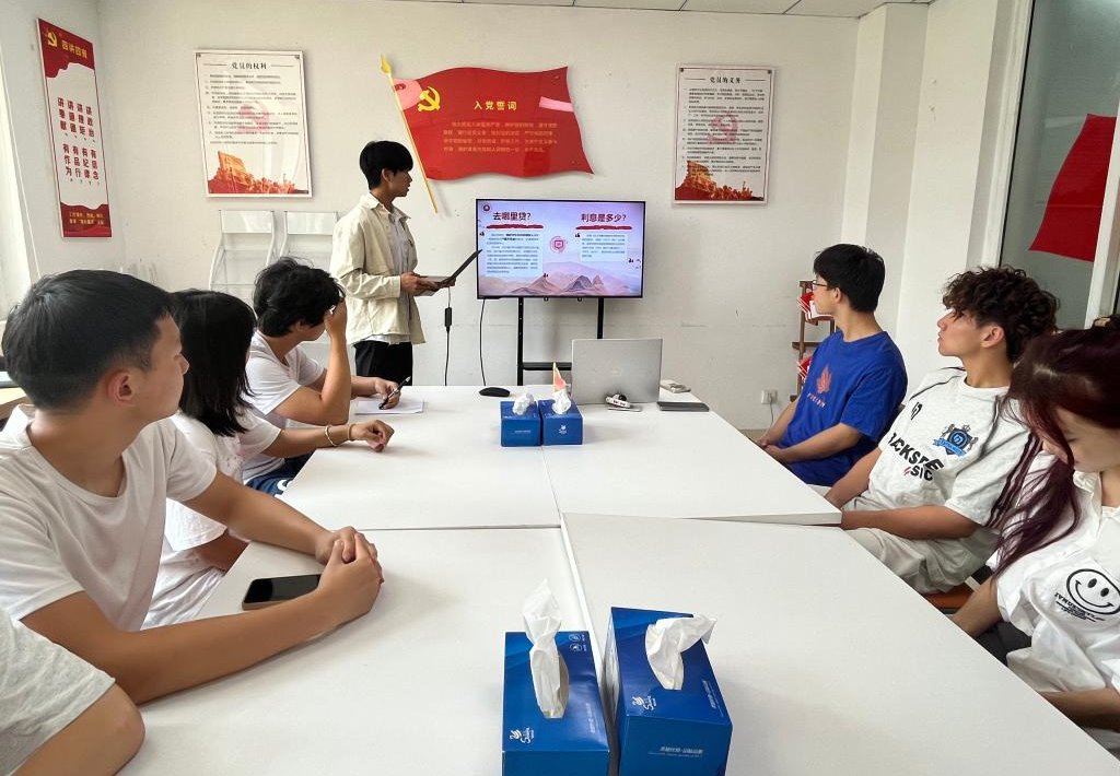 在金融安全知识普及方面,余邵鹏从防范电信诈骗、保护个人信息等方面入手,向同学们介绍了实用的金融安全知识。通过播放防诈宣传片,让大家在轻松的氛围中学习到了金融安全知识,增强了同学们的风险防范意识,提高防诈骗的自我保护能力。