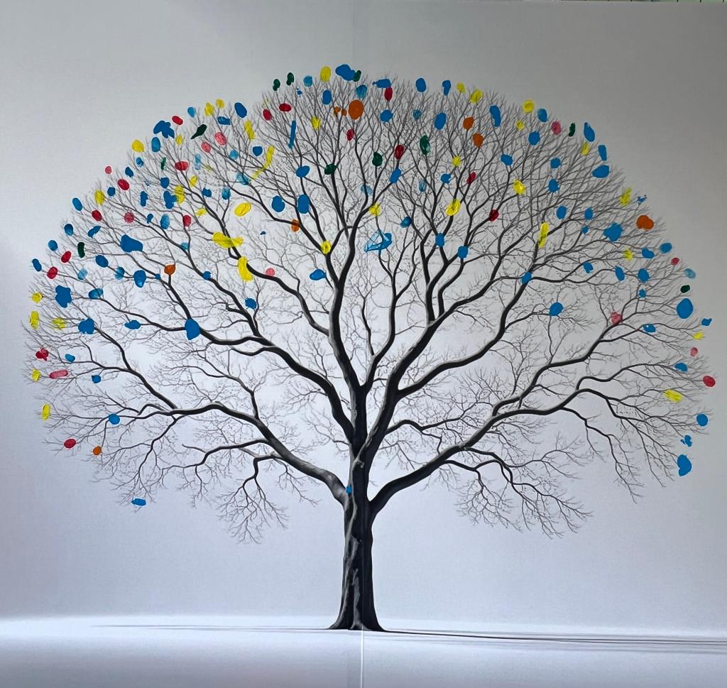 迎新点,一副1.5米高“成长树” 格外吸睛 —— 树干线条简洁有力,延伸出的枝丫错落有致,仿佛正等待着新生们用专属印记赋予它生机。每一位完成报到手续的新同学,都会在色彩丰富的印泥盘里挑选心仪的颜色,随后郑重地将手印按在树的枝丫上。随着报到进程推进,原本空荡的枝丫渐渐被一枚枚色彩各异的手印填满,从稀疏到繁密,从零散到规整,最终汇聚成一颗枝繁叶茂、充满生命力的 “迎新树”。这不仅是新生们留下的专属纪念,更象征着25级新同学从此在立博官网