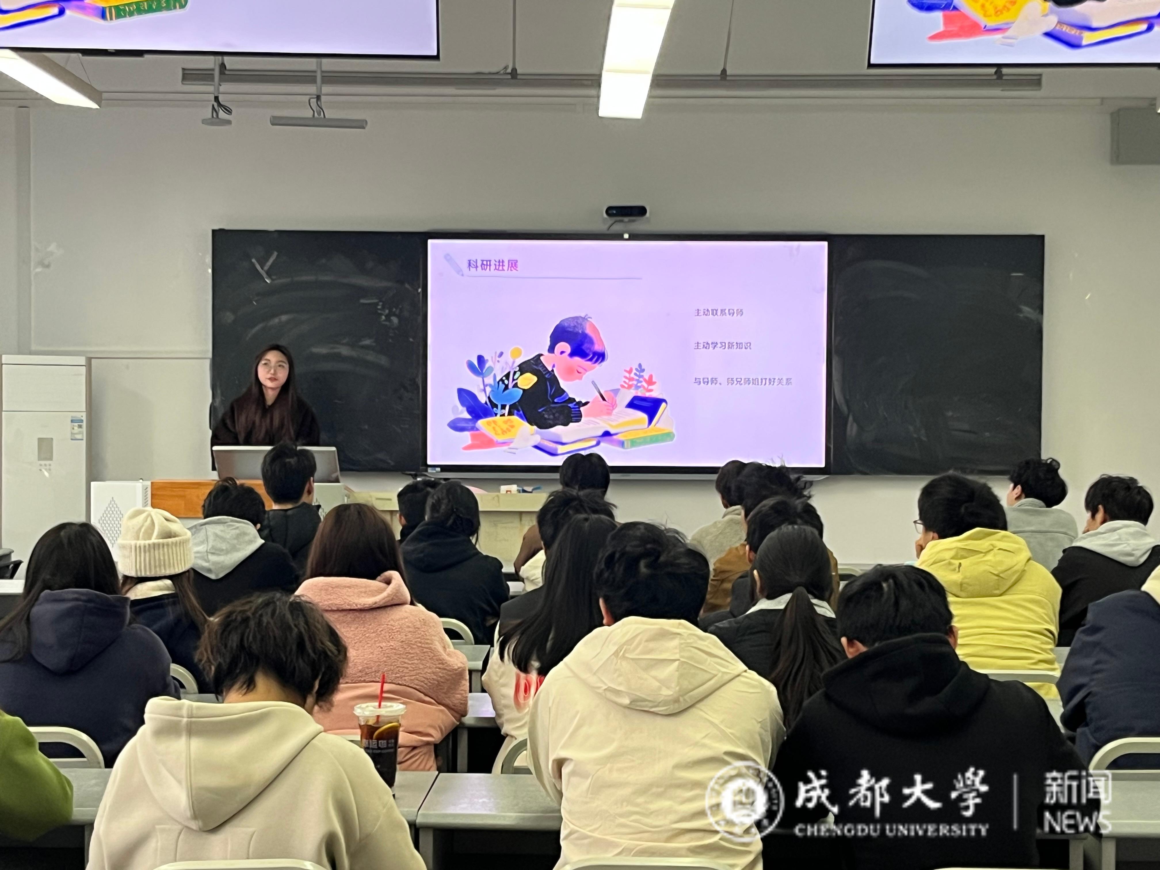 在分享中,李忻忆将自己在多线任务中游刃有余的“秘诀”,凝练为“目标、时间、行动、心态”四维成长法。她介绍,在目标管理上,要将长期规划拆解为可执行的阶段性任务;在时间利用上,应该注重区分“轻重缓急”,高效利用碎片化时间。此外,李忻忆还鼓励同学们打破“唯一模板”的束缚,在多元的成长样本中找到适合自己的路径,并坚持以热爱为锚点进行深耕。“大学没有标准答案,”她总结道:“‘不设限地探索’加上‘为热爱全力以赴’,能让我们的校园生活既充满可能性,也拥有归属感。”