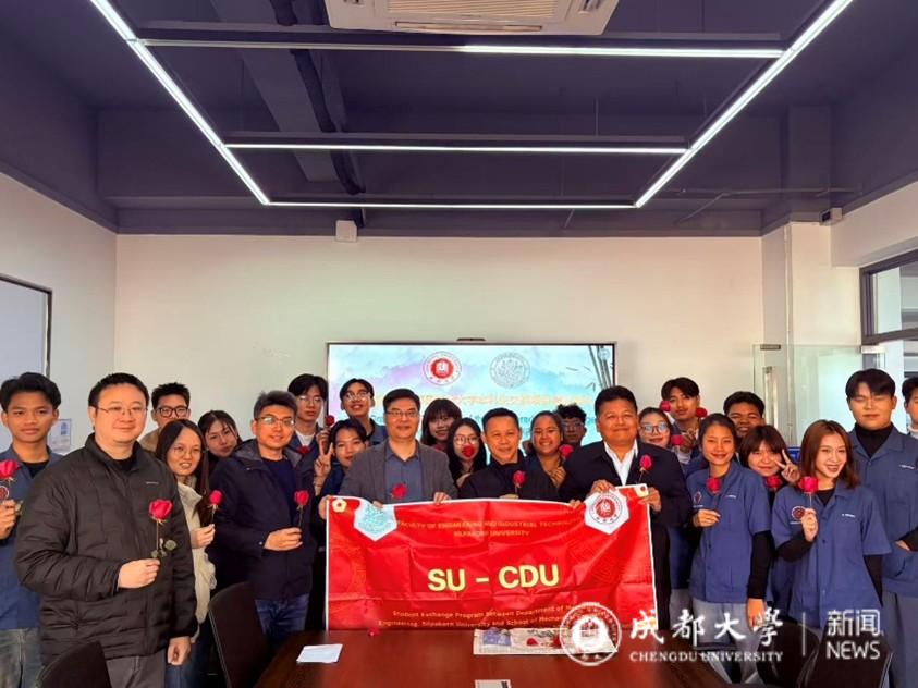 2025年12月25日,成都大学—泰国艺术大学交流生结业典礼在机械楼M502隆重举行。此次典礼迎来了泰国艺术大学交流生项目代表团,机械工程学位项目(国际项目)教师Sivapong Phetsong和Teerasak Hudakorn,以及参与此次活动的泰国艺术大学的学生们。立博