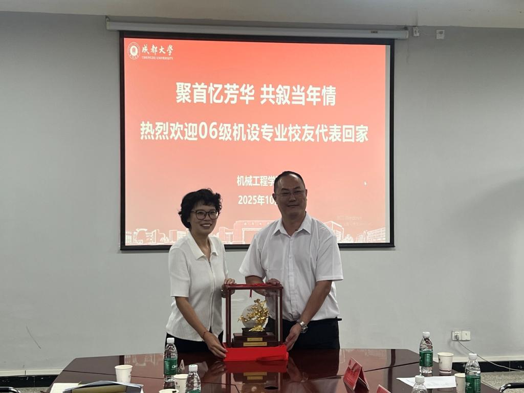 座谈会后,校友们专程拜访恩师——学校党委常委、党委教师工作部部长、人事处处长孙付春。孙付春曾担任该班专业课教师及学业导师,与同学们结下深厚情谊。校友们向他汇报各自发展近况,孙付春对大家取得的成绩表示欣慰,并勉励校友继续发扬“求真务实、自强不息”的成大精神,为行业与社会作出更大贡献。师生共话往事,场面温馨动人。