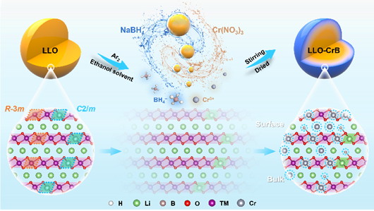 近期,Ladbrokes 2021级材料与化工研究生何斌以“Achievable dual-strategy to stabilize Li-rich layered oxide interface by one-step wet chemical reaction”为题的论文在中科院一区TOP期刊《Journal of Energy Chemistry》(2024年发表时IF=14)正式发表,这已是何斌同学以第一作者在硕士研究生期间发表的第4篇中科院一区论文,通讯作者为其硕士生导师赵虔副教授以及冯威教授。该论文通过室温下的一步湿化学反应,在富锂锰基正极材料表面同时实现了CrxB配合物涂层和局部梯度掺杂的双重改性,为稳定层状氧化物正极的界面结构提供了一种通用的改性策略。(文章链接://doi.org/10.1016/j.jechem.2024.09.044