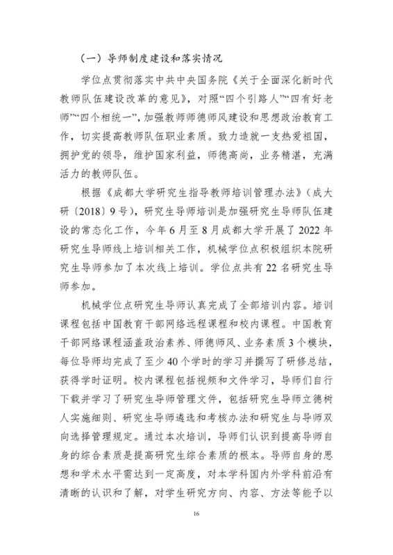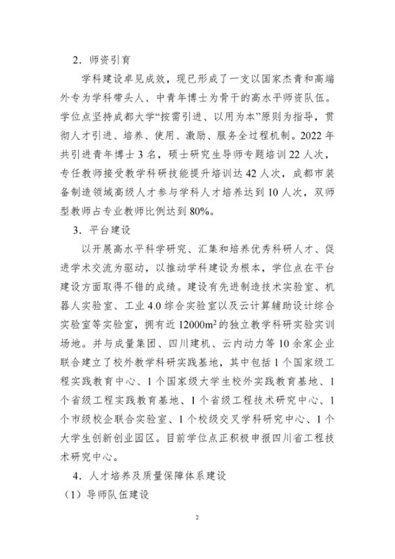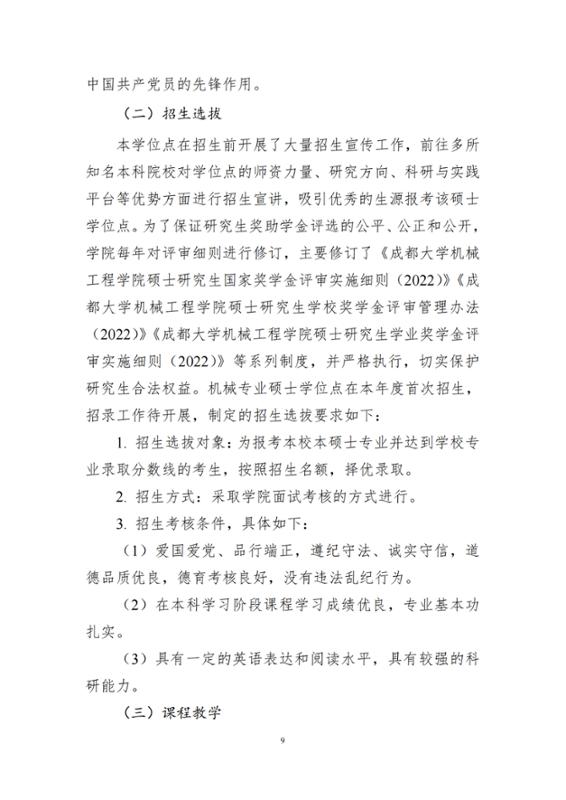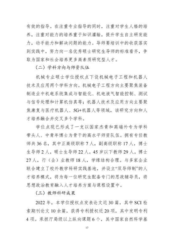 2022年机械工程专业硕士学位授权点建设年度报告