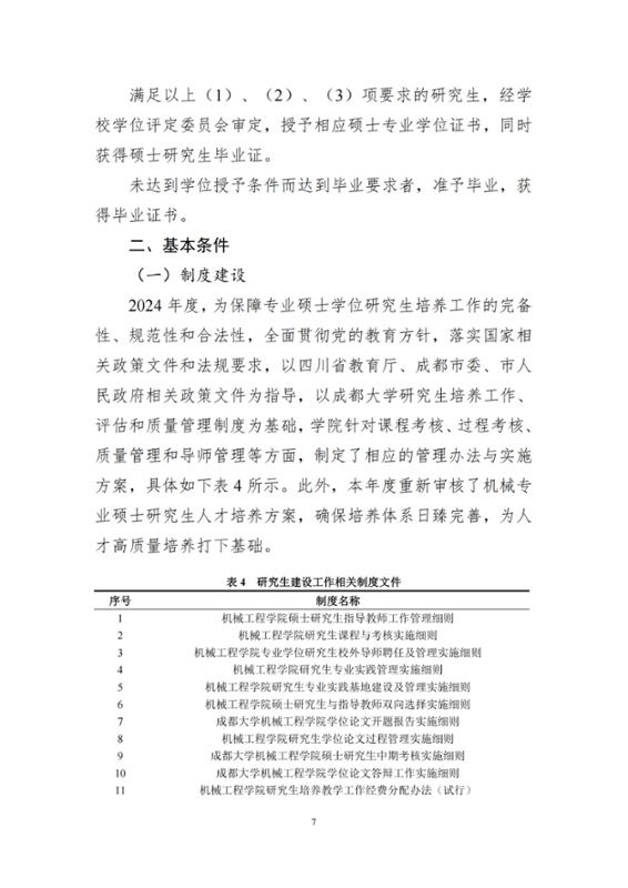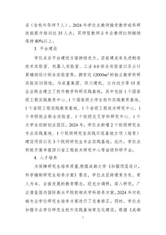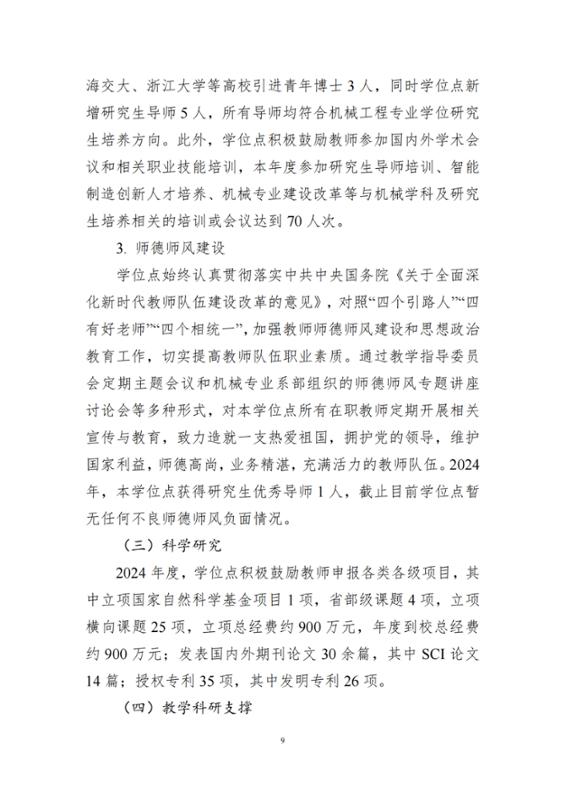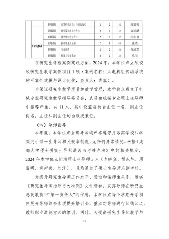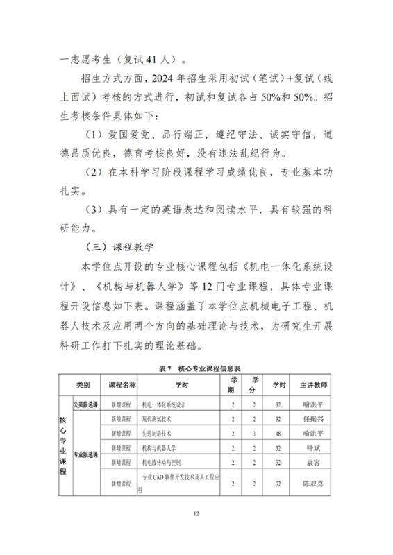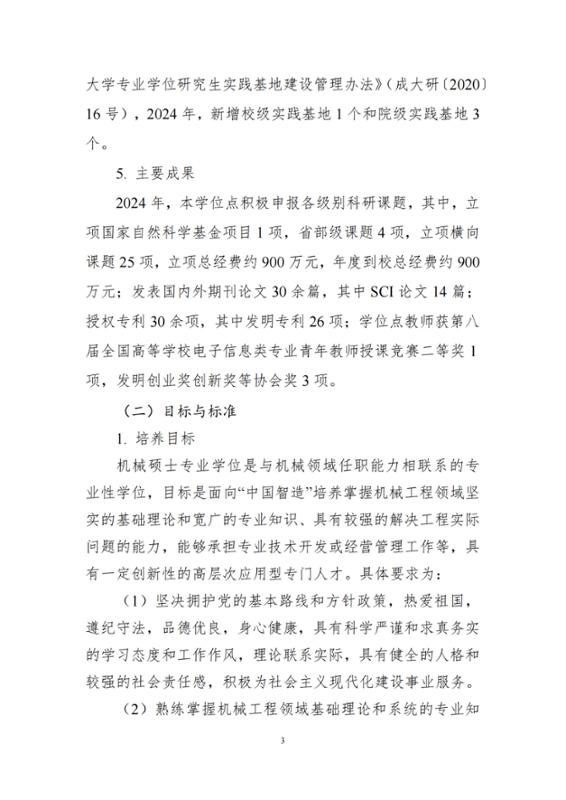 2024年机械工程专业硕士学位授权点建设年度报告