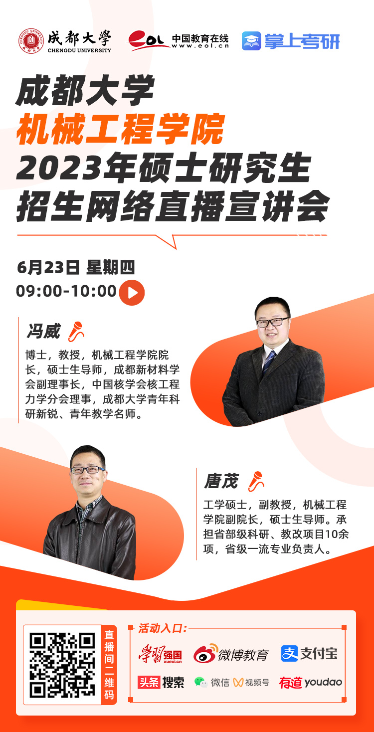 为更好地为广大考生提供研究生招生报考咨询服务,方便考生全面了解我校立博官网 研究生培养特色、学科专业优势等情况,6月23上午9:00-10:00立博官网 将开展2023年硕士研究生招生网络宣讲会,欢迎广大考生届时扫码进入直播间或点击//live.eol.cn/watch/3163652观看。