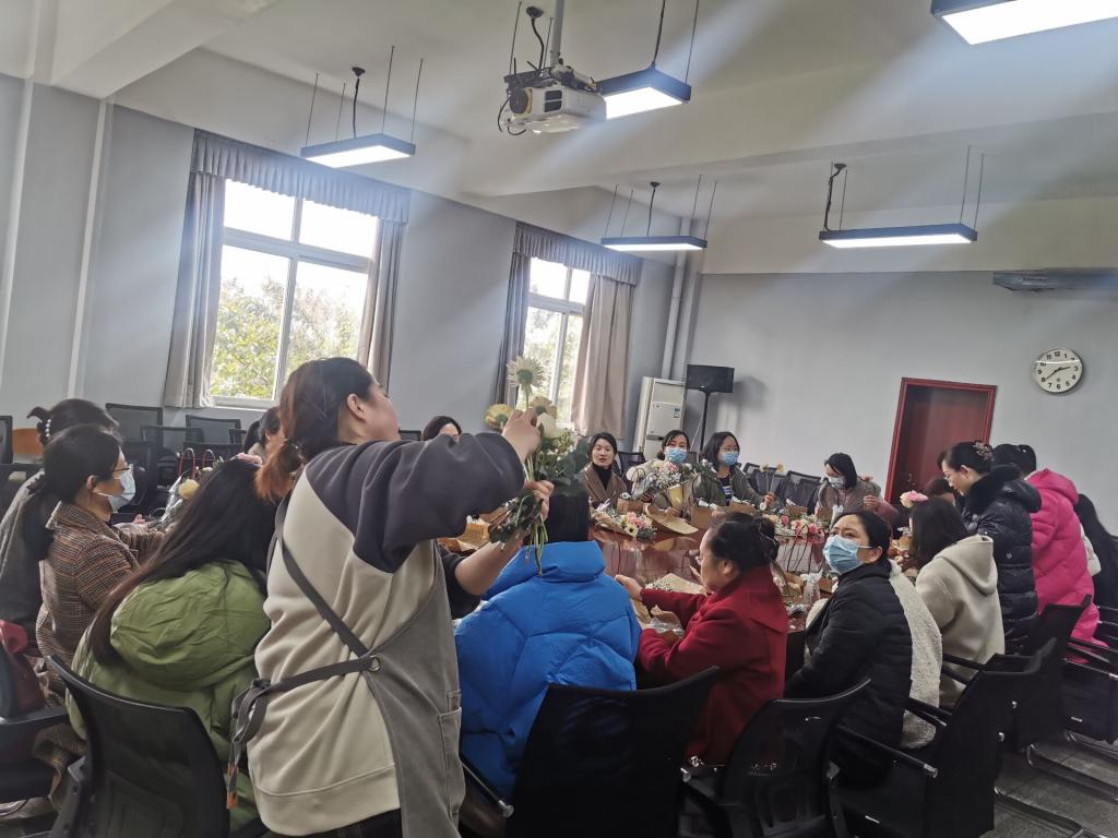 特邀了花艺师现场指导,通过生动细致的教学,让平日里严谨治学、精研学术的女老师们沉浸在创作与美的享受之中。春意在指尖流淌,岁月在笑容中放缓,在欢声笑语中,一篮篮精心构思的花艺作品逐渐呈现眼前。