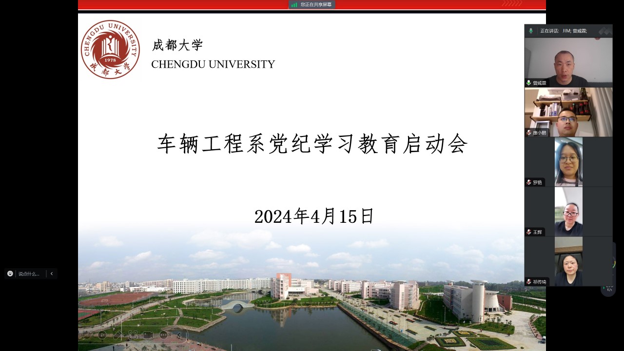 2024年4月15日下午,车辆工程教工党支部以视频会议的形式举行党纪学习教育启动会。会议由系支部书记戢敏主持,车辆工程系全体党员教师参加会议。