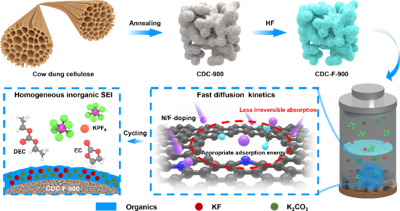 图2. 3D互连微孔结构的N/F掺杂纳米球硬碳的研究示意图