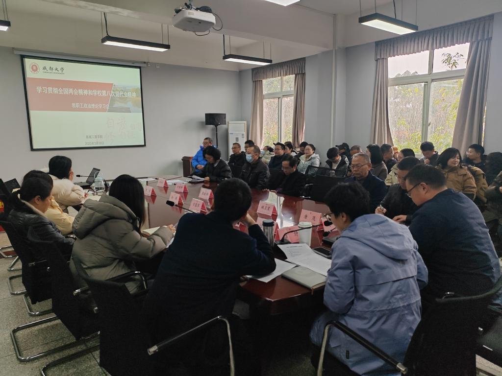 会议集中学习了2025年全国两会精神和学校第八次党代会精神,重点学习了2025年政府工作报告和《坚守立德树人初心 践行强校兴城使命加快推进特色鲜明、国内一流应用型城市大学建设》工作报告。今年全国两会,是党的二十届三中全会后首次全国两会,是我国政治生活中的一件大事,对于谋划全年经济社会发展目标任务、动员全国各族人民贯彻落实党中央决策部署具有重大意义,为决胜“十四五”建言献策,为推进中国式现代化凝心聚力。学习贯彻学校第八次党代会精神是全院当前和今后一个时期的重要政治任务,要把党代会精神转化为推动校院各项事业发展的强大动力。