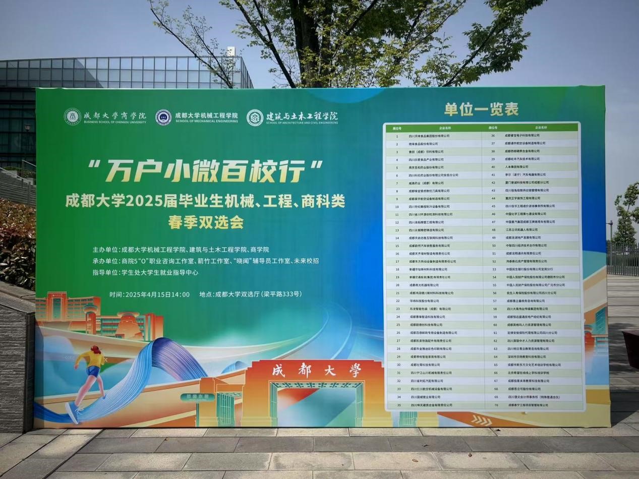 主办的“万户小微百校行”成都大学2025届毕业生机械、工程、商科类春季双选活动在成都大学双选厅圆满举行。