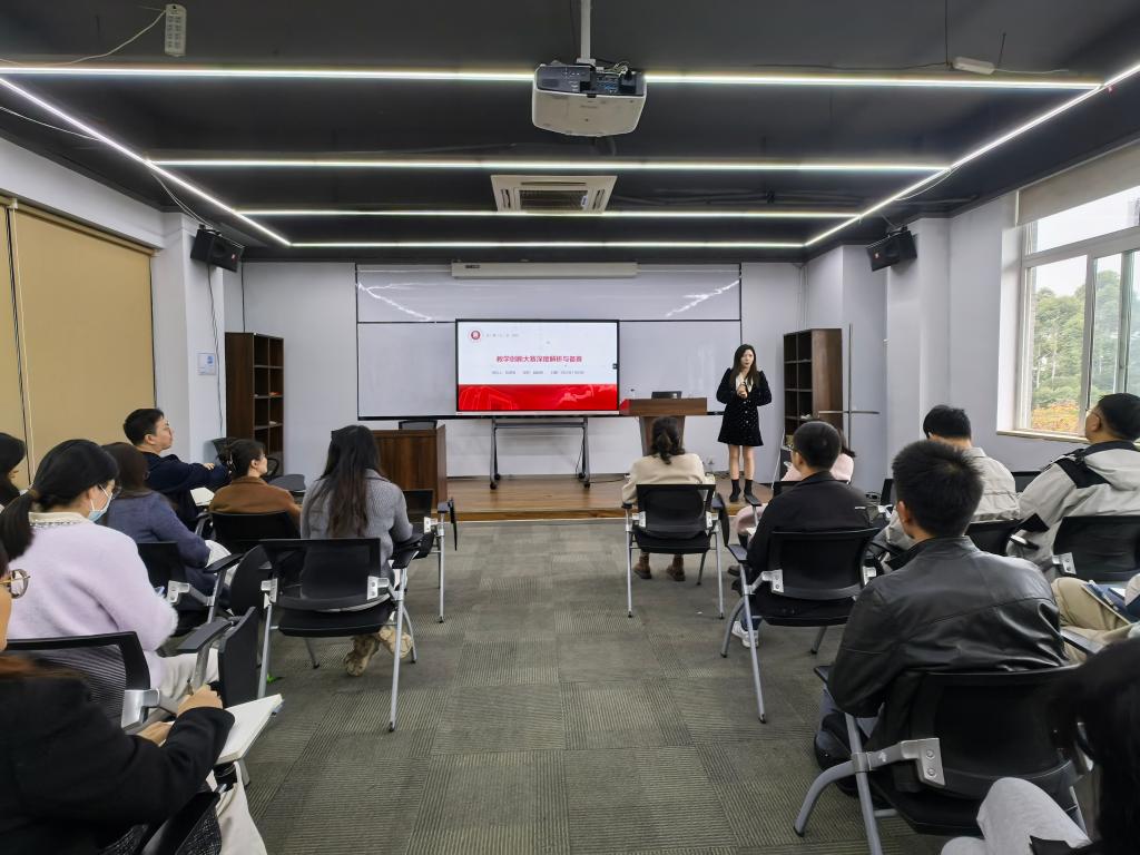 在正式讲解环节,陈淑慧老师首先从大赛的整体框架入手,系统阐述了本次教学创新大赛采用的“三环节”评审模式——主题演示、教学设计方案和课堂实录视频。她指出,赛题围绕“新工科”“产教融合”“智慧教学”等国家重点方向设置,鼓励教师在教学方法、技术手段和课程内容上实现突破。随后,陈老师结合自己在全国赛中获奖的案例,对创新教学的关键要素进行深入剖析,强调教学目标必须明确、教学资源要具备可复制性、教学效果要实现量化评估。针对备赛过程中的常见难点,陈老师提出了组建跨学科备赛团队、明确分工(教学设计、技术支持、数据分析),并现场解答了与会教师在教学设计、技术实现、数据评估等方面的具体问题,现场互动热烈,教师们纷纷表示受益匪浅。