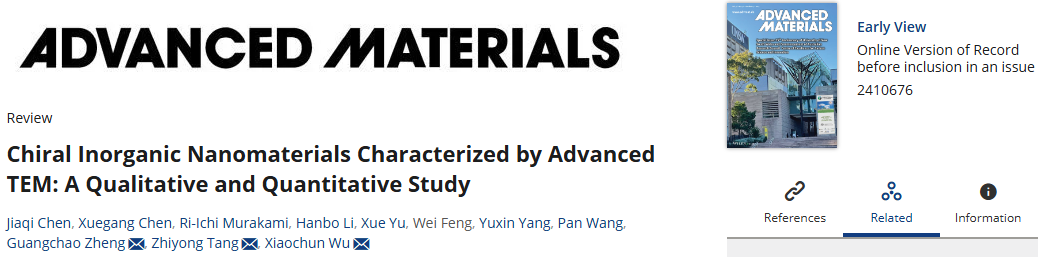 特聘研究员陈佳琪,学生陈薛钢与国家纳米科学中心吴晓春研究员,唐智勇院士,郑州大学郑广超副教授合作,近日在材料科学领域国际著名学术期刊《Advanced Materials》(中科院1区TOP期刊,IF=27.4)发表利用先进显微镜技术对手性无机纳米材料进行定性和定量研究分析方面的论文。
