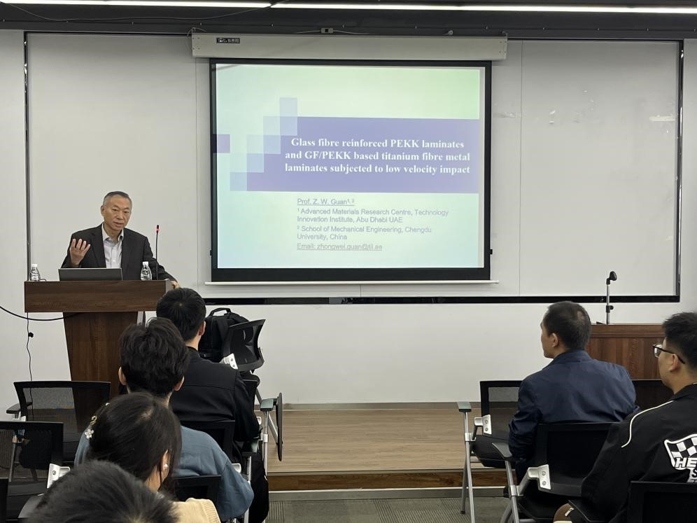 邀请,10月16日上午,阿布扎比技术创新研究所先进材料研究中心执行董事、成都大学特聘高端外国专家、博士生导师官忠伟教授于机械楼M501开展题为“Glass fibre reinforced PEKK laminates and GF/PEKK based titanium fibre metal laminates subjected to low velocity impact”的学术讲座。