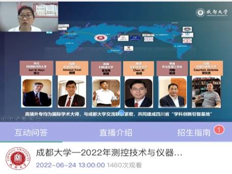 发展、专业建设、学生双创等全方位宣传了我校测控技术与仪器专业学科特点、培养特色、就业前景,得到了报考学子和家长们的积极关注与参与。整个直播过程中,考生提问与专业老师解答互动积极,观看人数达到1460人次。此次宣讲会极大推广了我校测控技术与仪器专业的社会影响力。