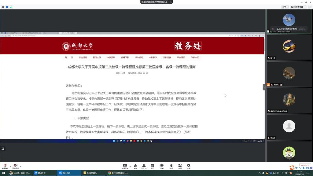 7月26日上午10:30,立博官网 召开在线会议,研讨一流课程申报和建设工作,会议由副院长唐茂主持,教科办、学科办、机电工程系、材料工程系、车辆工程系以及实验技术中心等部门相关负责人参加了本次线上会议。会上,唐茂解读了第三批校级一流课程以及第三批国家级、省级一流本科课程申报工作要求,全面梳理了立博 各级一流课程建设情况,要求立博 各部门要高度重视相关工作,立足长远,统筹谋划,以一流课程建设助力专业建设,推动立博 人才培养工作质量全面提升。
