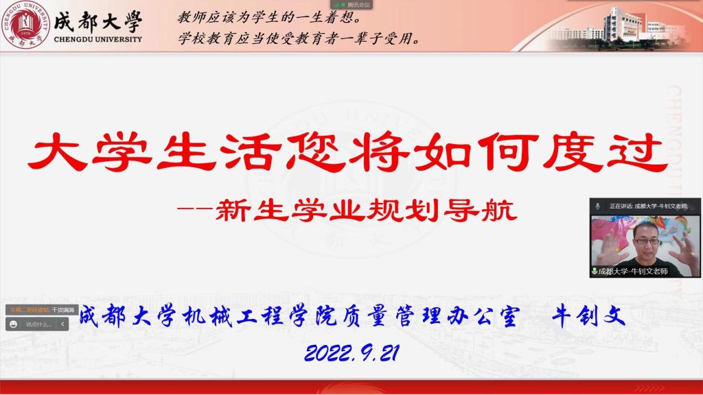 本次讲座通过腾讯会议在线直播的形式进行,由学工办陈璐老师主持,质量管理办公室主任牛钊文老师进行讲座。2022级5个专业的所有新生参加了讲座,参会人员475人。