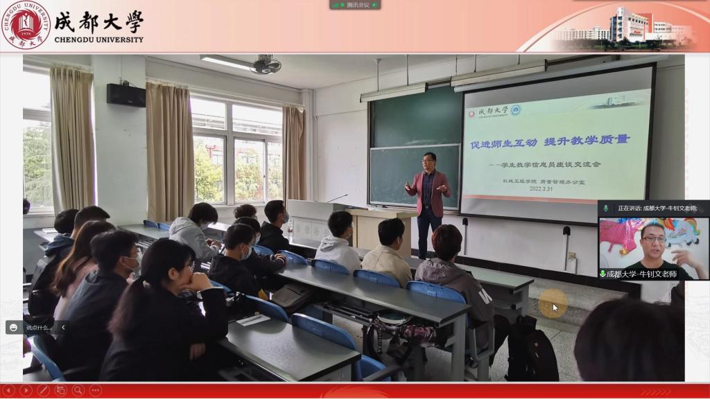 设立质量管理办公室的初衷及前期已开展的部分活动,表示将通过各种努力来架起师生沟通的桥梁,群策群力地共同努力来提升人才培养质量。期间,牛老师特别就即将开始的在线学习给同学们强调了一些注意事项并提供了相应的建议。