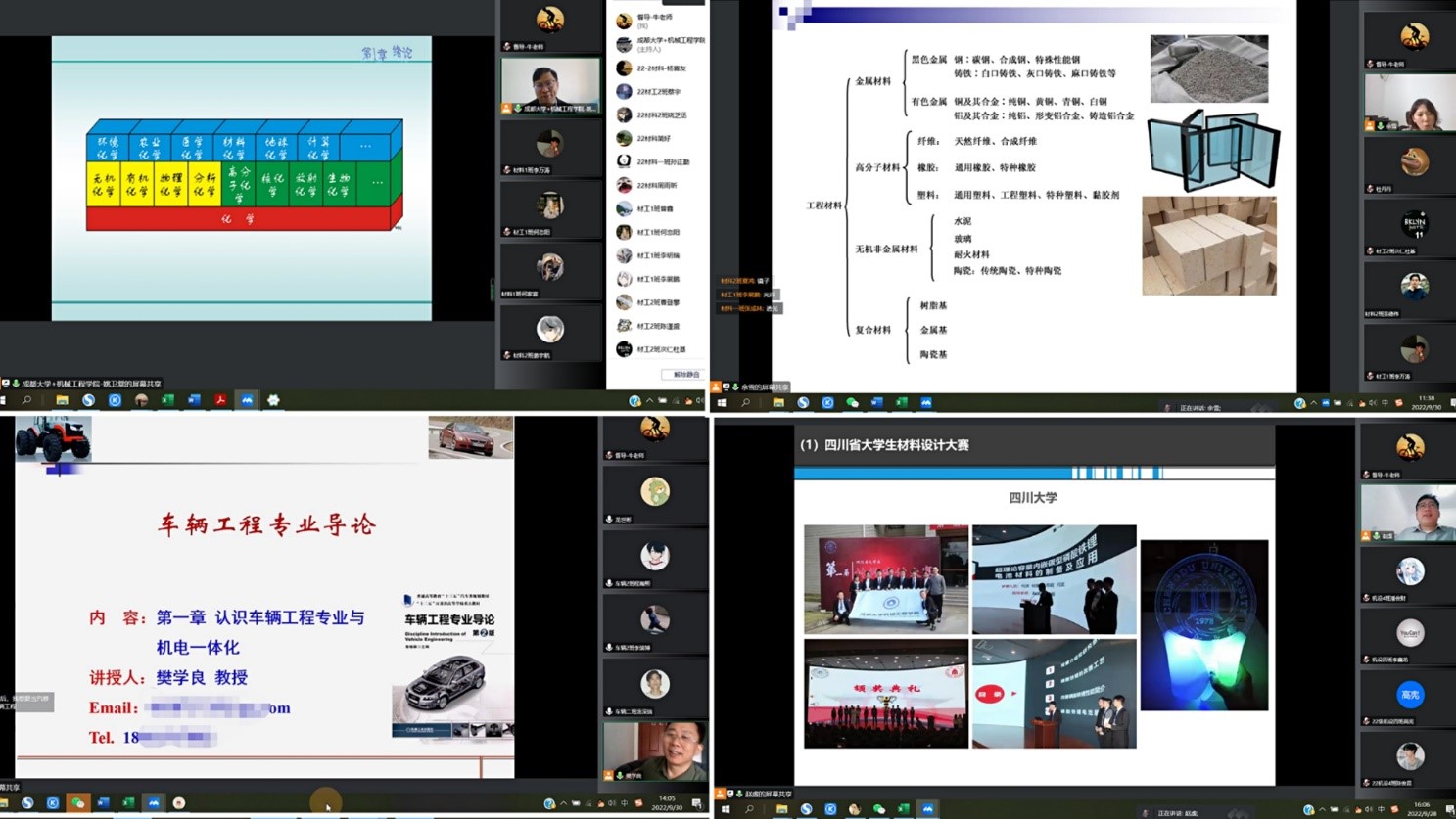 所开的新生第一周的课程以专业导论、工程制图、材料学前沿、现代化学基础这类前导性课程为主。各专业派出以教授为代表的精锐教师团队来给学生授课,老师们或以自身丰富的科研及工作经验讲起,或以带学生参加相应的学科竞赛及“互联网+”大学生创新创业大赛等学赛结合的经典案例讲起,或以国家精品在线课程的引入资源来开展教学。督导查课时发现所开的27门课程均高质量顺利开课,老师们准备充分,学生到课率高,上课时互动也很积极。